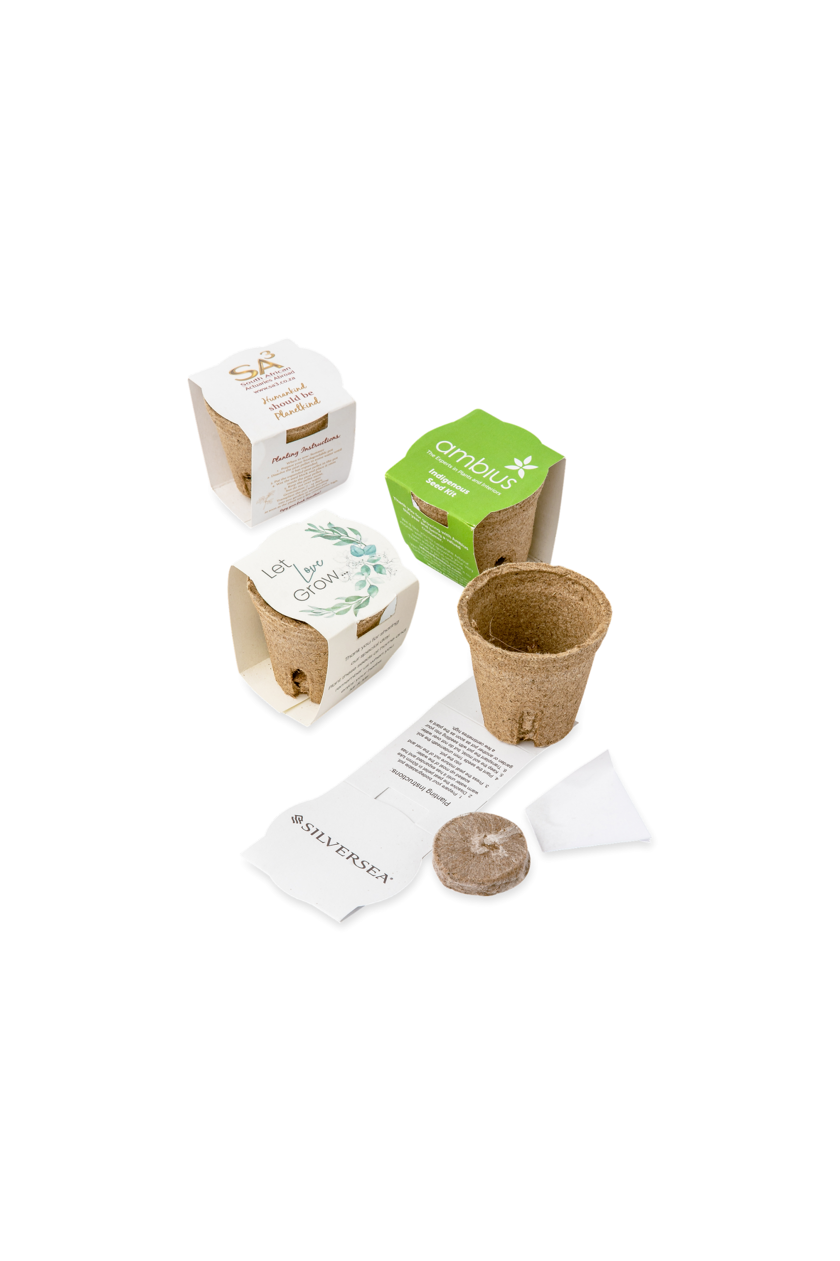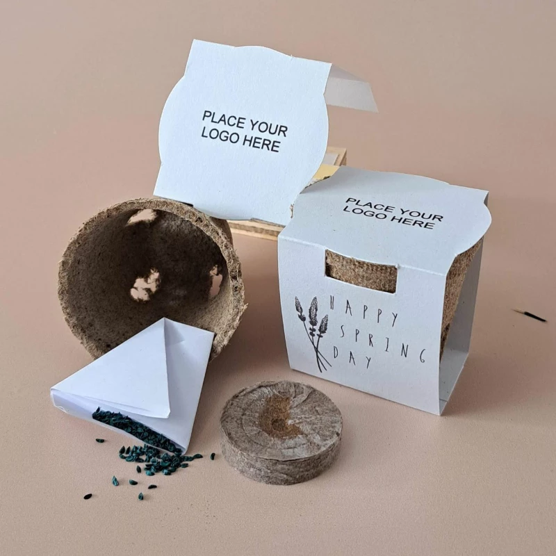 • Our brandable Seed Grow Kits include a biodegradable pot, peat pellet, and seeds—wrapped in a customizable bellyband that showcases your brand with a green twist. Thoughtful and eco-friendly, they’re perfect for client gifts, team rewards, or event giveaways that nurture connection and sustainability.