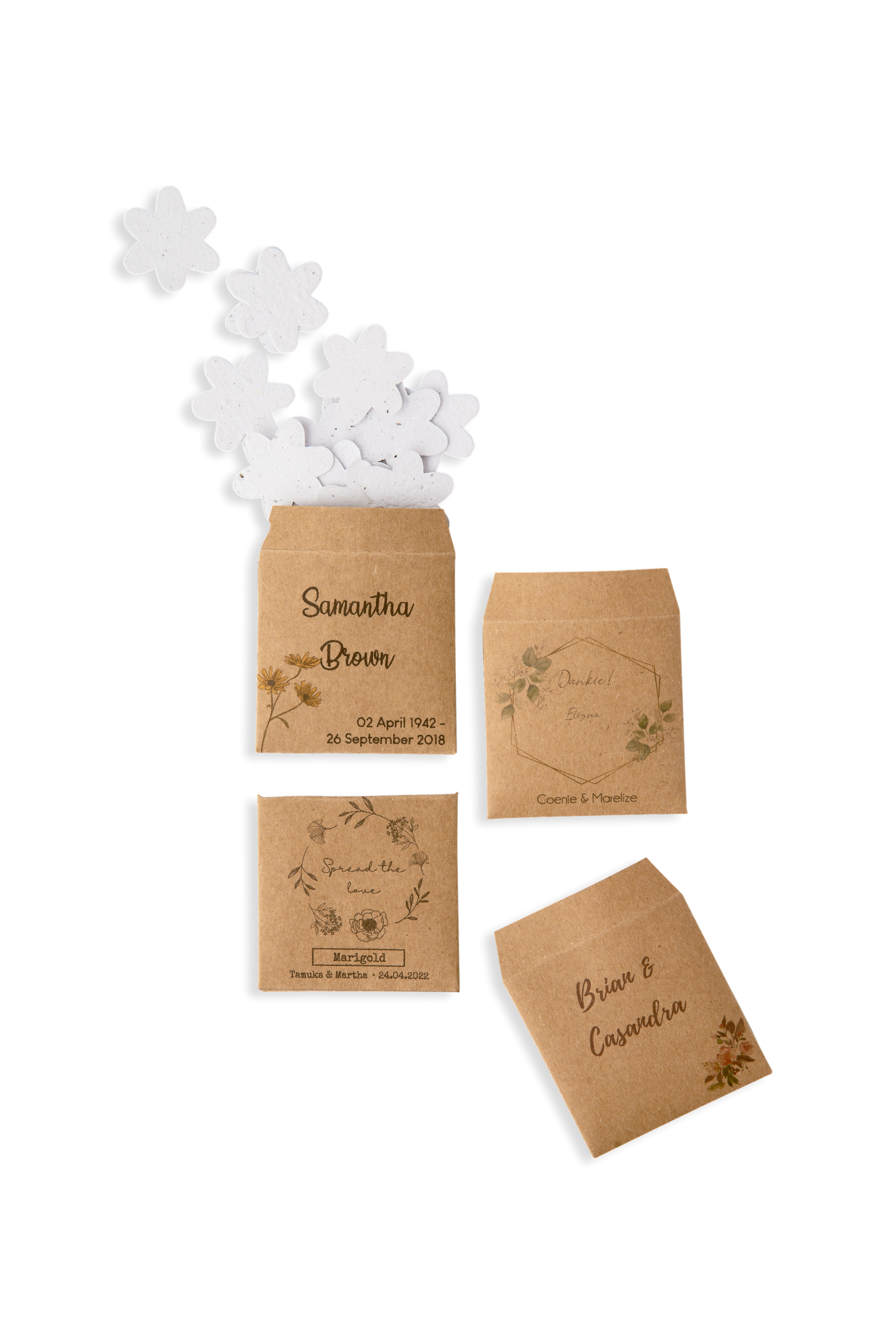 - Made from 100% recycled paper and filled with your choice of seeds, our customizable envelopes are a meaningful, planet-friendly gift. Designed to showcase your brand, they’re perfect for events, client packages, or thoughtful gestures that grow.
