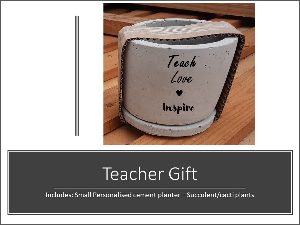 Includes: Small Personalised cement planter – Succulent/cacti plants & vinyl print