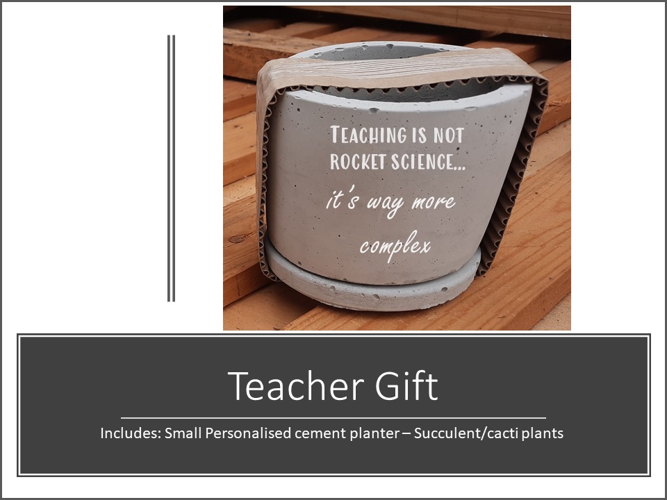Includes: Small Personalised cement planter – Succulent/cacti plants & vinyl print