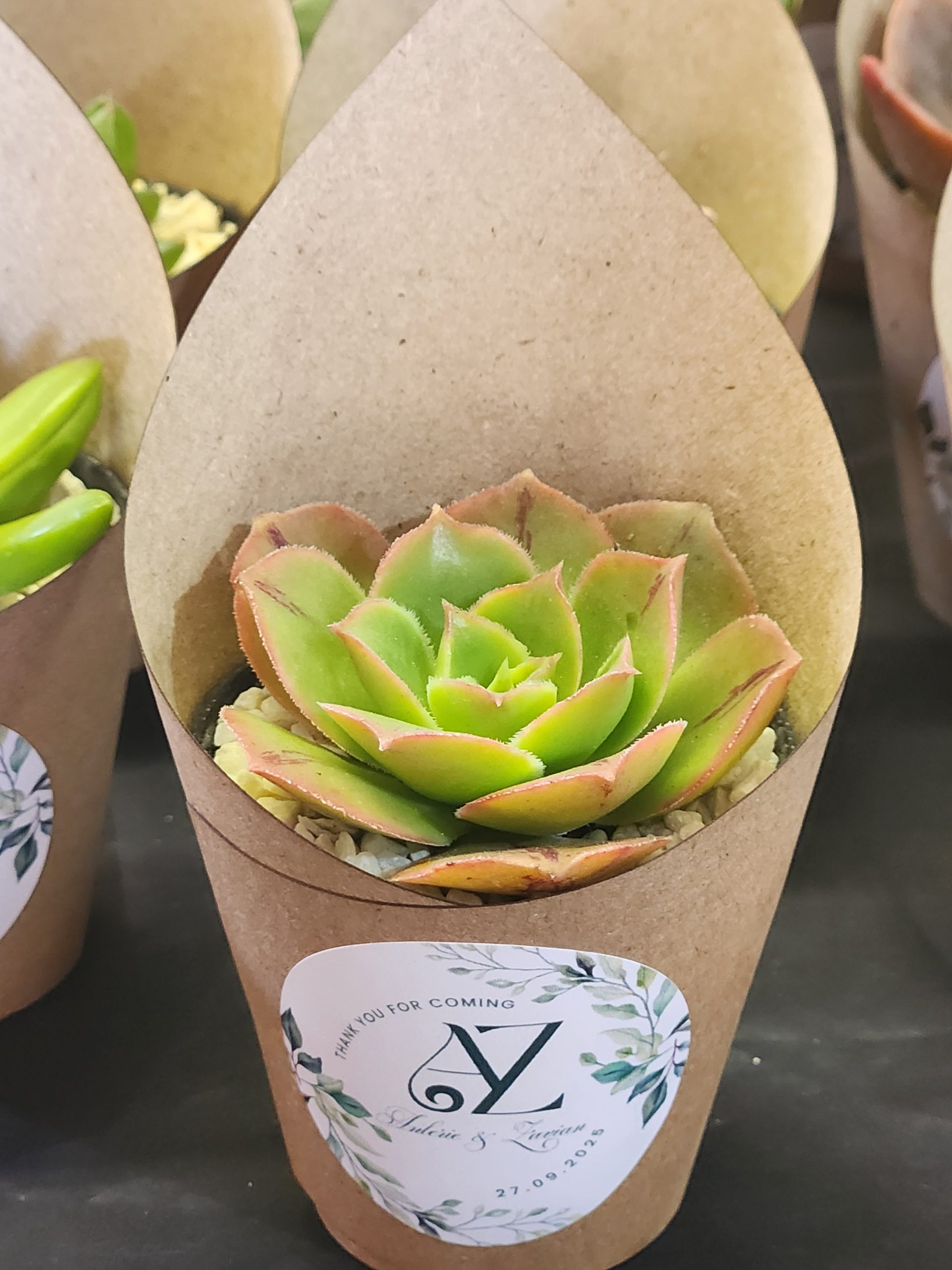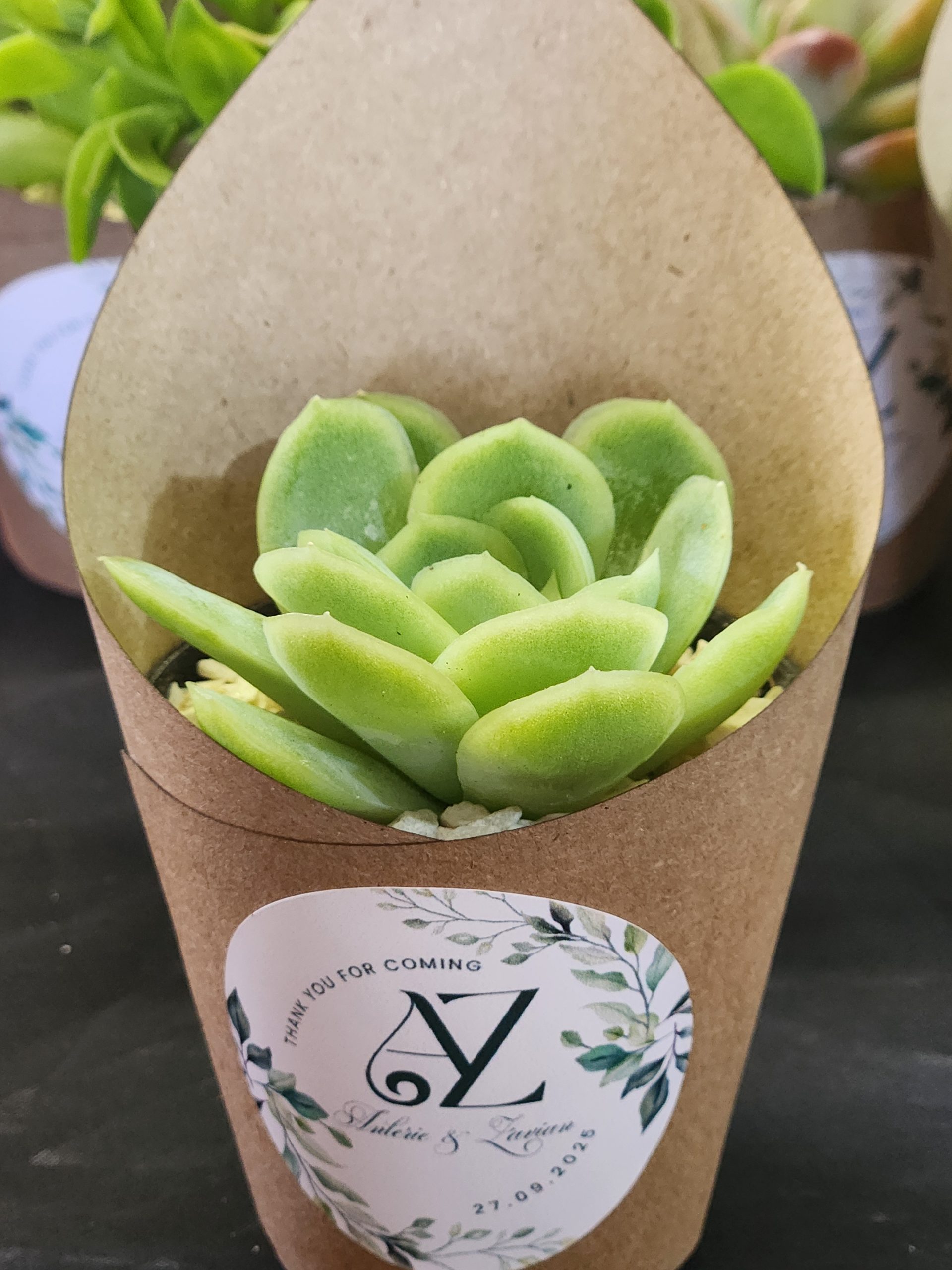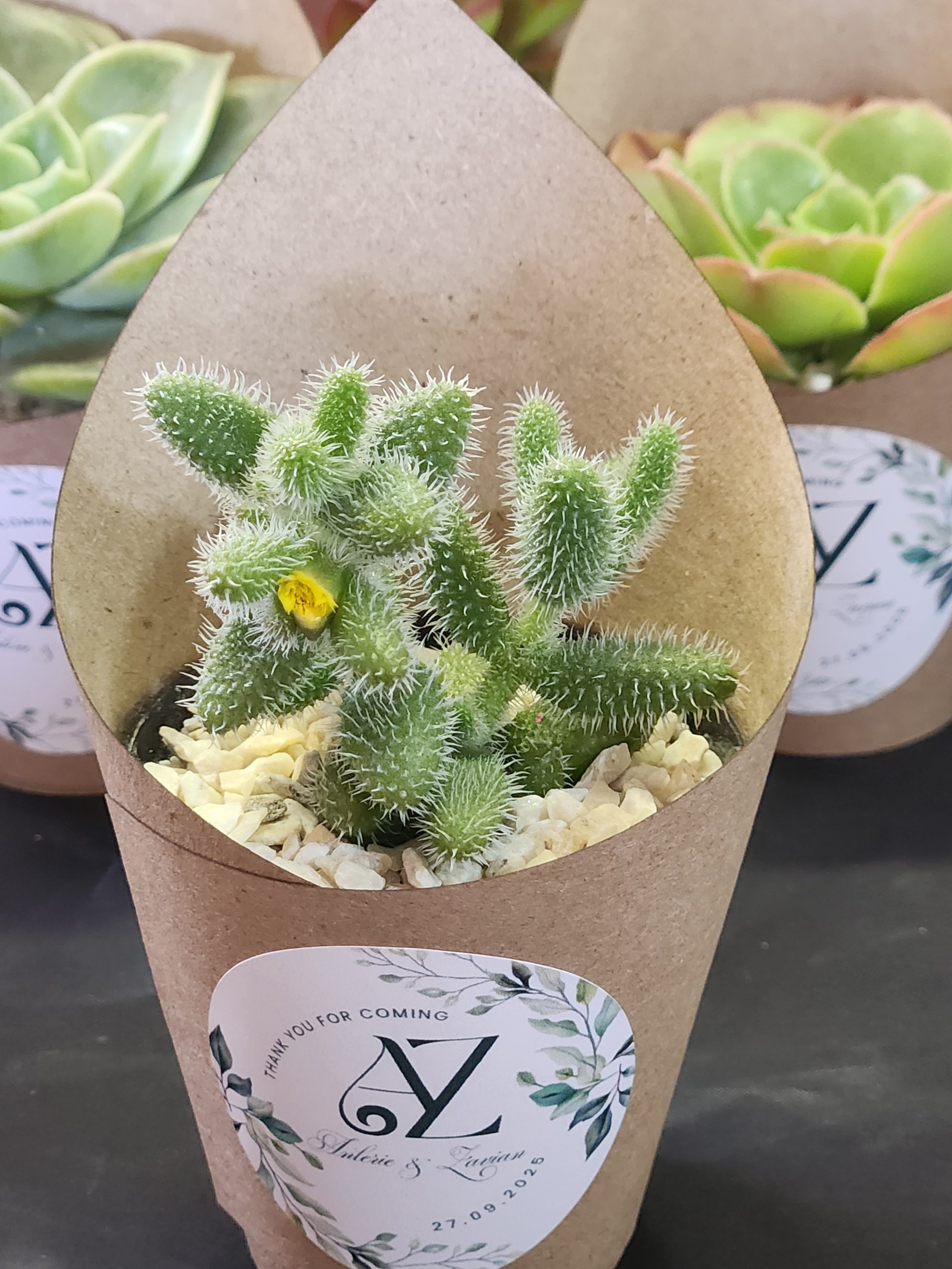 Wrapped Round plastic pot with sticker (exclude string or twine)